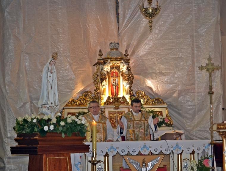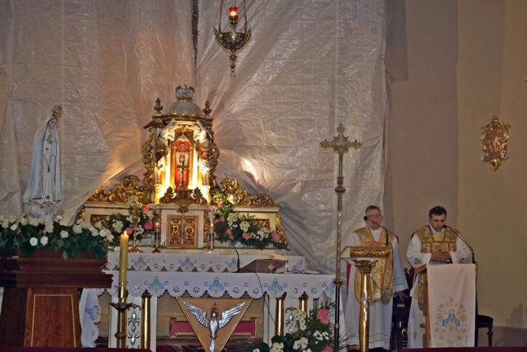 Są w życiu wspólnot parafialnych dni szczególnie ważne, uroczyste, skłaniające do refleksji, zadumy, modlitwy i dziękczynienie. Niewątpliwie takim dniem jest dzień rocznicy konsekracji kościoła. W wielu wspólnotach nieznana jest data konsekracji kościoła.  Mikstacki kościół został pobudowany  w latach 1913-1914. Aktu  jego konsekracji  dokonał 20 października 1918 roku Abp gnieźnieński i poznański Edmund Dalbor. W tym roku parafia obchodzi zatem 99.rocznicę konsekracji kościoła. Uczczono ją  mszą świętą w intencji budowniczych kościoła oraz ks. kan. Franciszka Ruszczyńskiego. Mszę św. poprzedziło nabożeństwo różańcowe podczas którego polecaliśmy budowniczych, dobrodziejów, kapłanów posługujących w mikstackiej parafii. Przed nabożeństwem różańcowym można było obejrzeć slajdy przenoszące nas w czasy budowy kościoła, a następnie w dzień jego konsekracji. W dniu 99. rocznicy konsekracji kościoła przy ołtarzu stanęli ks. kan. Krzysztof Ordziniak i ks. kan. Grzegorz Klapa. Sprawowali Msze św. w zabytkowych, pięknie haftowanych rzymskich ornatach. Rozpoczynając Eucharystię ks. kan. Krzysztof Ordziniak powiedział: „ Dziękujemy dziś Panu Bogu za ten kościół, w którym wiele naszych braci i sióstr przyjęło chrzest, komunię świętą i inne sakramenty. Dziękujemy, że jest dla nas znakiem obecności Pana Boga wśród swego ludu. Tu gromadzimy się wokół ołtarza, aby budować wspólnotę parafialną”. Ks. kan. podkreślił,  że gromadząc się w 99. rocznicę konsekracji kościoła chcemy modlić się za jego budowniczych, za ks. Franciszka Ruszczyńskiego, który było proboszczem parafii w tamtym okresie. Kontynuując ks. proboszcz powiedział: „ Trzeba nam dzisiaj pochylić czoło wobec naszych przodków, wobec ich wielkiej determinacji”. W słowie skierowanym do zebranych w świątyni ks. kan. Krzysztof nawiązując do czytań mszalnych podkreślił, że to wielki dar, iż Bóg, który jest tajemnicą nieogarnioną   pozwala się zamknąć w takim małym miejscu, bo chce być blisko człowieka, chce być blisko każdego z nas. Podkreślił, że dziękując za świątynię powinniśmy mieć także świadomość, że każdy z nas jest świątynią Boga. Kontynuując pytał:  Co nam po pięknych świątyniach jeśli nie będzie miał się kto w nich gromadzić? Zwrócił uwagę na potrzebę  uświadomienia sobie, że w momencie Chrztu św. zostaliśmy włączeni we wspólnotę Kościoła. Ks. kan. podkreślił, że nadal bardzo aktualne są słowa zapisane przez papieża Pawła VI, mówiące o tym, że współczesny świat nie potrzebuje nauczycieli, a jeśli słucha nauczycieli to dlatego, że są świadkami. Zwrócił uwagę, że każdy z nas wezwany jest do tego, by udzielić  odpowiedzi na pytanie - kim jest dla niego Jezus- i  by świadczyć swoim życiem o Nim. W dalszej części rozważania ks. kanonik nawiązując do słów Ewangelii zaakcentował, że każdy z nas jest opoką Kościoła, jest cegł w nim. Podkreślając  potrzebę zaangażowania się we wspólnotę powiedział: „ Każdy z nas jest bardzo ważny  w oczach Bożych. Miejmy świadomość, że każdy z nas obecny tutaj jest bardzo potrzebny Jezusowi. Jezus bardzo liczy na każdego z nas, na nasze siły i o te siły dziś prośmy”. Kończąc rozważanie ks. kanonik zachęcił zebranych jeszcze raz  do dziękczynienia za wiarę naszych przodków, za ich wysiłek i determinację podczas budowy mikstackiego kościoła. Warto tu dodać, że piękna mikstacka fara została zbudowana w zaledwie czternaście miesięcy. Gdy patrzymy na wielkość świątyni,  jej piękno stawiamy sobie pytanie jak to było możliwe. A jednak… Zapewne zadecydowały o tym wiara i determinacja parafian, co mocno podkreślał w rozważaniu podczas Mszy Świętej ks. proboszcz.
