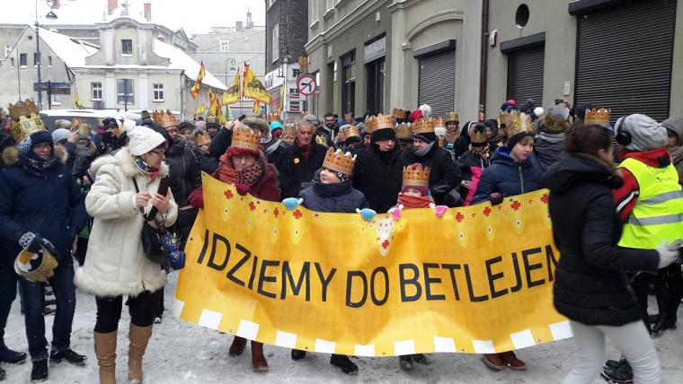 Ulicami Wałbrzycha przemaszerował dziś Orszak Trzech Króli ,organizowany jak co roku przez Fundację Orszak Trzech Króli. Współorganizatorami były władze Wałbrzycha oraz Szczawna Zdroju pod przewodnictwem Prezydenta Miasta Wałbrzycha - dr. Romana Szełemeja, wałbrzyskie parafie, a w szczególności organizacje katolickie, którym przewodniczył ks. prałat dr Krzysztof Moszumański, proboszcz parafii p.w. Niepokalanego Poczęcia NMP w Wałbrzychu. Wydarzenie rozpoczęło się o godz. 11.00 Mszą św. w parafii św. Aniołów Stróżów. Po Eucharystii przy kolegiacie uformował się orszak, który prowadzili siedzący na koniach trzej królowie: Kacper, Baltazar oraz Melchior. Orszak zatrzymał się u Heroda, który przywitał ich na wałbrzyskim Rynku. Scenka ta została odtworzona przez Prywatne Gimnazjum i Liceum Sióstr Niepokalanek w Wałbrzychu. Z Rynku trzej królowie wspólnie ze swoim orszakiem udali się do Miejskiego Ratusza, gdzie odbył się na ich cześć program wizualno-muzyczny, zorganizowany przez gimnazjum im. Korczaka w Wałbrzychu. Przemierzając ulice miasta orszak dotarł do swojego celu, tzn. do szopki Betlejemskiej. Odnalazł tam nowo narodzone dziecko z Matką Najświętszą oraz św. Józefem . Trzej królowie pokłonili się św. Rodzinie oraz wręczyli dary. Hołd, jaki złożyli Mędrcy ze Wschodu, jest znakiem, że i poganie zostali powołani do przyjęcia wiary. Część oficjalną wydarzenia zakończyły podziękowania ,złożone przez ks. prałata Krzysztofa Moszumańskiego wszystkim tym, którzy swoim zaangażowaniem przyczynili się do wspaniałej oprawy tego przedsięwzięcia. Lista była długa: począwszy od władz Wałbrzycha, Szczawna Zdroju, poprzez stadninę koni Książ, Teatr Dramatyczny im. Jerzego Szaniawskiego w Wałbrzychu, organizacji katolickich, szkół. Słowa podziękowania złożył dr Roman Szełemej, który wykorzystał tę okazję do wręczenia nagrody laureatom konkursu na najpiękniejszą szopkę Bożonarodzeniową. Około godziny 13.00 ks. prałat pobłogosławił licznie zebrane osoby. Po części oficjalnej piosenka Arki Noego "Świeć, gwiazdeczko, świeć" rozpoczęła wspólne radosne świętowanie poprzez śpiew wydarzenia przybycia trzech króli do szopki Betlejemskiej. Ulicami Wałbrzycha przemaszerował dziś Orszak Trzech Króli ,organizowany jak co roku przez Fundację Orszak Trzech Króli. Współorganizatorami były władze Wałbrzycha oraz Szczawna Zdroju pod przewodnictwem Prezydenta Miasta Wałbrzycha - dr. Romana Szełemeja, wałbrzyskie parafie, a w szczególności organizacje katolickie, którym przewodniczył ks. prałat dr Krzysztof Moszumański, proboszcz parafii p.w. Niepokalanego Poczęcia NMP w Wałbrzychu. Wydarzenie rozpoczęło się o godz. 11.00 Mszą św. w parafii św. Aniołów Stróżów. Po Eucharystii przy kolegiacie uformował się orszak, który prowadzili siedzący na koniach trzej królowie: Kacper, Baltazar oraz Melchior. Orszak zatrzymał się u Heroda, który przywitał ich na wałbrzyskim Rynku. Scenka ta została odtworzona przez Prywatne Gimnazjum i Liceum Sióstr Niepokalanek w Wałbrzychu. Z Rynku trzej królowie wspólnie ze swoim orszakiem udali się do Miejskiego Ratusza, gdzie odbył się na ich cześć program wizualno-muzyczny, zorganizowany przez gimnazjum im. Korczaka w Wałbrzychu. Przemierzając ulice miasta orszak dotarł do swojego celu, tzn. do szopki Betlejemskiej. Odnalazł tam nowo narodzone dziecko z Matką Najświętszą oraz św. Józefem . Trzej królowie pokłonili się św. Rodzinie oraz wręczyli dary. Hołd, jaki złożyli Mędrcy ze Wschodu, jest znakiem, że i poganie zostali powołani do przyjęcia wiary. Część oficjalną wydarzenia zakończyły podziękowania ,złożone przez ks. prałata Krzysztofa Moszumańskiego wszystkim tym, którzy swoim zaangażowaniem przyczynili się do wspaniałej oprawy tego przedsięwzięcia. Lista była długa: począwszy od władz Wałbrzycha, Szczawna Zdroju, poprzez stadninę koni Książ, Teatr Dramatyczny im. Jerzego Szaniawskiego w Wałbrzychu, organizacji katolickich, szkół. Słowa podziękowania złożył dr Roman Szełemej, który wykorzystał tę okazję do wręczenia nagrody laureatom konkursu na najpiękniejszą szopkę Bożonarodzeniową. Około godziny 13.00 ks. prałat pobłogosławił licznie zebrane osoby. Po części oficjalnej piosenka Arki Noego "Świeć, gwiazdeczko, świeć" rozpoczęła wspólne radosne świętowanie poprzez śpiew wydarzenia przybycia trzech króli do szopki Betlejemskiej.