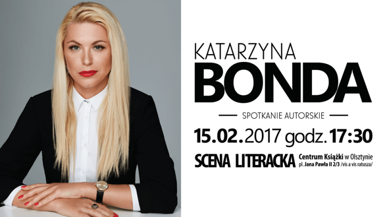 15 lutego o godzinie 17.30 w Książnicy Polskiej w Olsztynie (woj.warmińsko-mazurskim) odbędzie się spotkanie autorskie z Katarzyną Bondą. Wstęp bezpłatny!