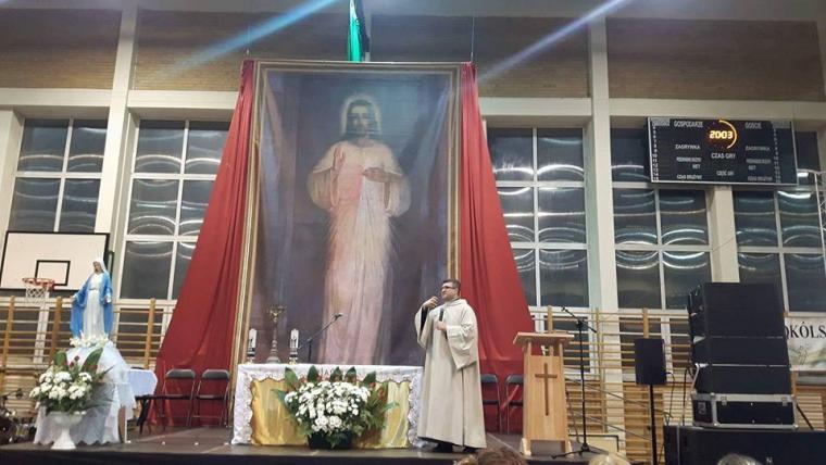 „Szkoła modlitwy” odbyła się na hali sportowej Zespołu Szkół w Sokółce. Jej organizatorem była wspólnota „Przyjaciele Oblubieńca” przy parafii pw. św. Antoniego Padewskiego w Sokółce, którą prowadzi ks. Michał Urban.