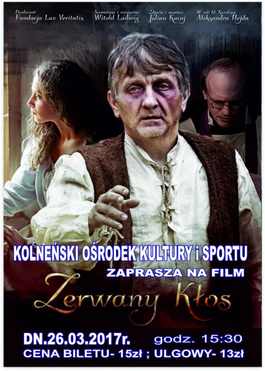 26 marca (w niedzielę) w Kolneńskim Ośrodku Kultury i Sportu odbędą się projekcje filmów: ,,Zerwany Kłos" o godz.15.30 i ,,Był sobie pies" o 17.15.