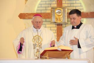 W homilii bp Stanisław Napierała przypomniał, że kopia obrazu św. Józefa Kaliskiego pobłogosławiona przez Jana Pawła II w Rzymie przemierzyła całą diecezję kaliską na początku jej istnienia. – Wszędzie św. Józef był przyjmowany po królewsku i zobaczyliśmy, że w każdej części diecezji ludzie kochają św. Józefa. Witali Go z miłością i wielką wiarą. I tak św. Józef rozpoczął scalanie naszej diecezji. Minęło już ponad 20 lat. W tym czasie powstały nowe parafie, a wśród nich Wasza parafia Matki Bożej Różańcowej, do której dzisiaj przybył św. Józef – powiedział celebrans.