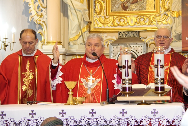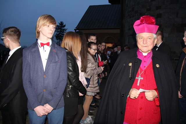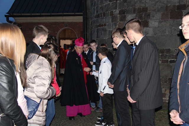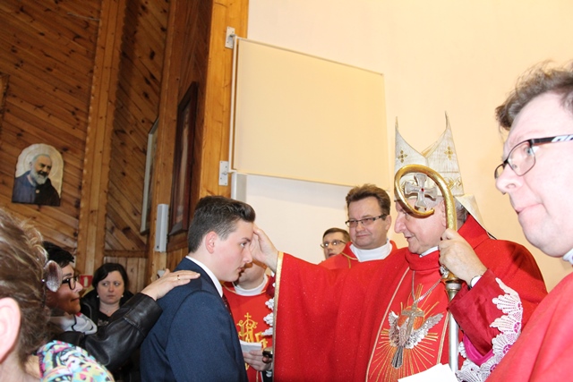 W homilii ordynariusz diecezji kaliskiej podziękował proboszczowi, wikariuszowi i parafianom za troskę o świątynię i kaplice filialne. - Ta troska duszpasterska jest najważniejsza, bo zobaczcie ile tu pokoleń ludzi przeszło. Te mury są przesiąknięte modlitwą, ale także łzami i radością. Mamy świadomość, że wszyscy zdążamy w jednym kierunku, czy to się komuś podoba, czy nie, ale będąc tutaj chcemy zapracować na wieczność – przekonywał bp Janiak. Zwracając się do młodzieży wskazywał, że sakrament bierzmowania zobowiązuje, aby mieć odwagę bronić wiary, gdy zajdzie taka potrzeba. - Wiara jest łaską. Papież Franciszek przed rozpoczęciem Wielkiego Postu w katechezie mówił, że wszystko jest łaską. My dzisiaj chcemy dziękować Panu Bogu za łaskę wiary, za to, że zostaliśmy włączeni do Kościoła. Chcemy modlić się, byście dochowali wierności Panu Bogu i byście wiarę otrzymaną przekazywali innym – mówił celebrans. Prosił o modlitwę w intencji prześladowanych za wiarę. - Chcemy pamiętać o tych, którzy oddają życie na misjach. Tyle ludzi ginie za wiarę, za przyznanie się do krzyża Chrystusowego, za posiadanie tekstów Pisma Świętego. My żyjemy w kraju wolnym, mamy przystęp do Kościoła, do sakramentów świętych, do Słowa Bożego, tylko potrzebna jest chęć i gorliwość człowieka – stwierdził biskup kaliski.