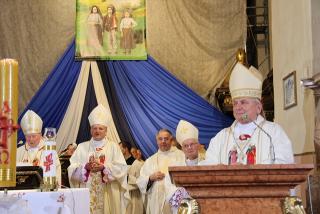 Wskazywał, że rodzina znajduje się dzisiaj pośrodku wielkiego zmagania między dobrem a złem, między życiem a śmiercią. – Jeśli świat, w którym żyjemy, tak boleśnie doświadcza rozdwojenia to zauważmy, że to rozdwojenie najbardziej dotkliwie przechodzi przez rodzinę, wokół której ciągle podnosi się wielka wrzawa i co chwilę dochodzi do wielkiego wzburzenia. I dlatego trzeba każdej chrześcijańskiej rodzinie powtórzyć te słowa, które usłyszał od Jezusa św. Paweł: „Odwagi, trzeba bowiem, żebyście zaświadczyli o Mnie”. Potrzeba odwagi, bo wielka jest siła świadectwa, jakie dają katoliccy małżonkowie trwający wiernie w złożonej wzajemnie przysiędze, prowadzący na co dzień chrześcijańskie życie, przekazujący je jak najcenniejszy skarb następnym pokoleniom. Niech św. Józef, patron tego miejsca, opiekun całego Kościoła wyprasza taką odwagę wszystkim małżonkom – mówił kaznodzieja.