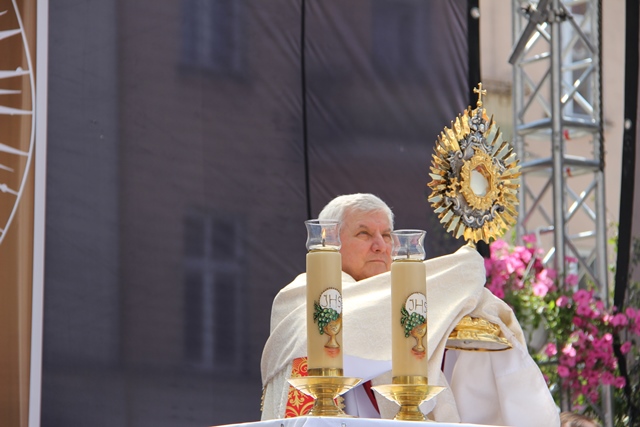 Zachęcał wiernych, aby zaprosili Jezusa do swojego życia. – Dziękujmy Panu Bogu, że możemy uczestniczyć w tej pięknej uroczystości Bożego Ciała i zaprośmy Go do swojego serca, do swoich rodzin, niech nam błogosławi w dalszym pielgrzymowaniu – powiedział bp Janiak.