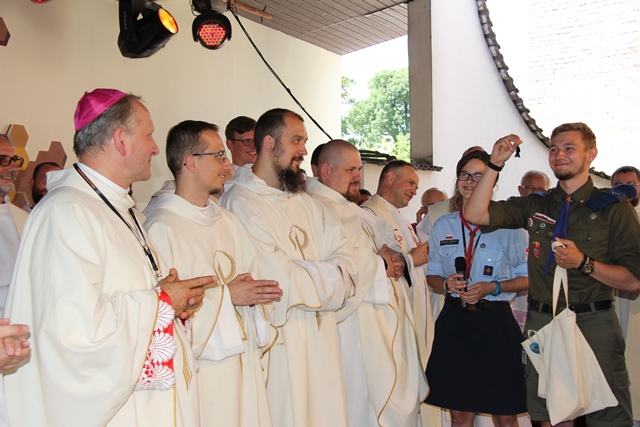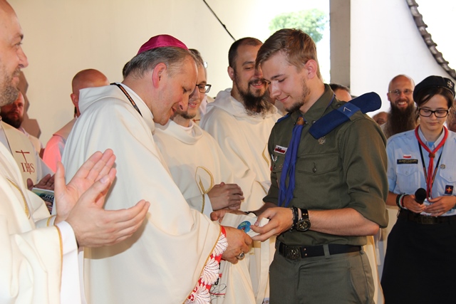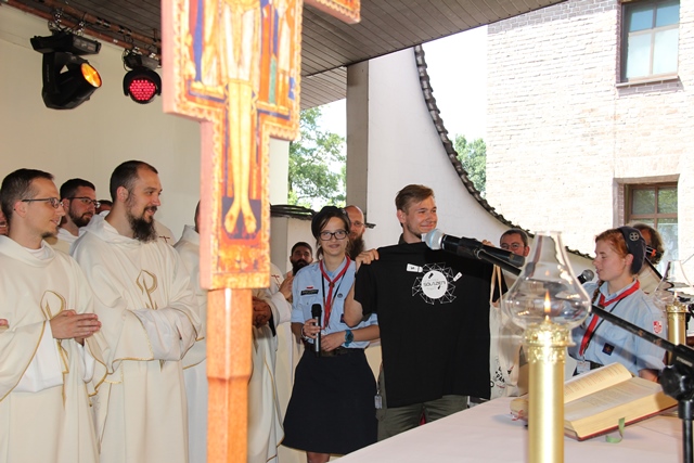 Podczas spotkania młodzież wręczyła biskupowi identyfikator uczestnika, notatnik, koszulkę i kubek przyjmując go w ten sposób do wspólnoty młodych.