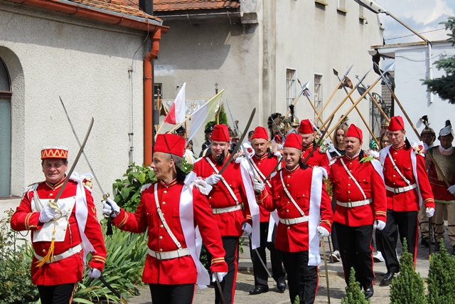 Przed salą wiejską odbyła się prezentacja przybyłych na uroczystość Straży Grobu Pańskiego.
