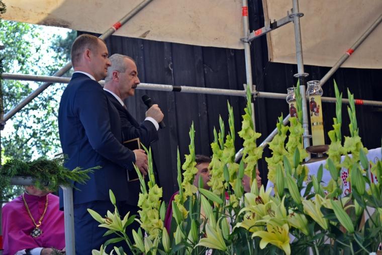 Ze słowami podziękowania za ustanowienie przed dziesięciu laty św. Rocha niebieskim Patronem miast Mikstat zwrócił się do ks. Biskupa pan Burmistrz.