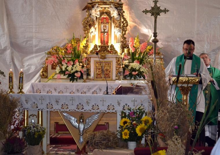 O godz. 10:30  w kościele farnym pw. Świętej Trójcy odprawiona została Msza Święta dziękczynna za tegoroczne zbiory oraz w intencji rolników, ogrodników, działkowiczów. Mszy Świętej koncelebrowanej przewodniczył ks. Proboszcz, Krzyzsztof Ordziniak, współcelebransami byli ks. kan. Grzegorz Klapa i ks. kan. Jerzy Rasiak.
