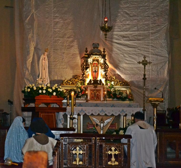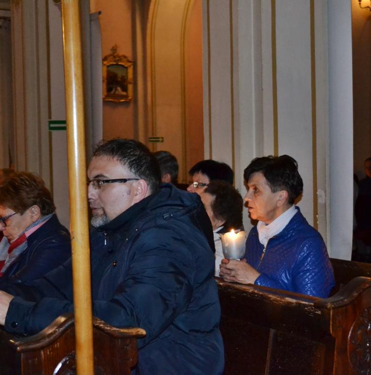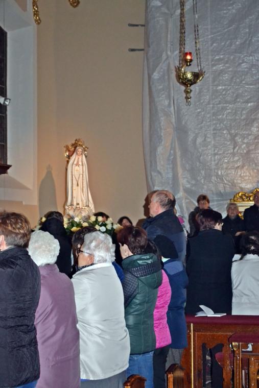 Podczas różańca fatimskiego rozważane były tajemnice bolesne. W pierwszej tajemnicy bolesnej modlitwą w  sposób szczególny objęliśmy papieża Franciszka. Rozważanie każdej tajemnicy zakończone  było postanowieniem. To po pierwszej tajemnicy zawarte zostało w słowach: „W chwilach samotności, niezrozumienia przez ludzi będę łączył się z Jezusem i ofiarował swoje cierpienia dla zbawienia świata”.  Trudne, ale ważne dla naszego duchowego rozwoju postanowienie wybrzmiało po rozważaniu drugiej tajemnicy bolesnej. Zachęcało ono zebranych, by za przykładem Jezusa przyjmowali cierpienia w milczeniu oraz troszczyli się o czystość duszy i ciała.