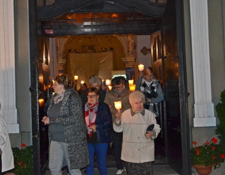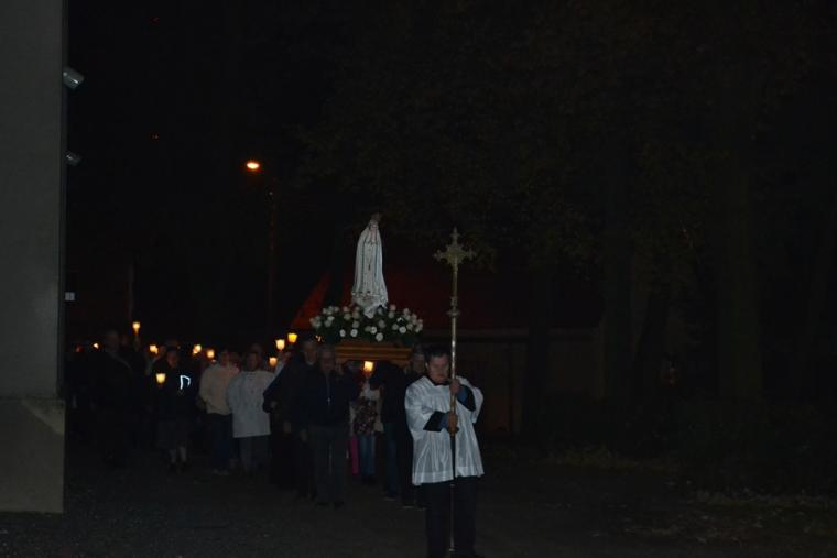 Po zakończeniu modlitwy różańcowej za krzyżem i figurą Matki Boże Fatimskiej ze śpiewem na ustach, z płonącymi lampionami wyruszyliśmy w procesji wokół kościoła. Po powrocie procesji do kościoła w łączności duchowej z Jasną Górą zaśpiewaliśmy Apel Jasnogórski. Ku niebu popłynęły słowa: Maryjo: jestem, pamiętam, czuwam.