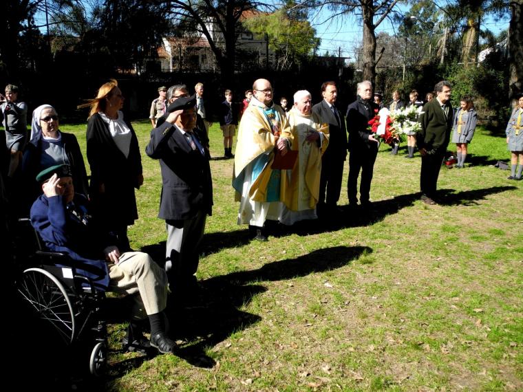 Następnie odbyła się ceremonia złożenia kwiatów pod masztem. W pierwszej parze: Pan Grzegorz Sobociński - I Radca Ambasady RP w Buenos Aires wraz z Panem Ryszardem Konopką – Prezesem Związku Polaków w Argentynie. W kolejności: Hm. Andrzej Wojno – Przewodniczący Zarządu Okręgu ZHP w Argentynie wraz z O. Jerzym Twarogiem – Rektorem Polskiej Misji Katolickiej w Argentynie. Po złożeniu kwiatów i oddaniu czci poległym – minutą ciszy, głos zabrał O. Rektor PMK. W kilku słowach wprowadził obecnych w klimat obchodów tego wyjątkowego dnia. „Dokładnie 80 lat temu, od hitlerowsko - sowieckiej napaści na Polskę na podstawie ustaleń paktu Ribbentrop - Mołotow rozpoczął się największy w historii konflikt zbrojny. Słowa „Pamięć i Przestroga” powinny być motywem przewodnim dzisiejszej rocznicy. Polacy w Argentynie pragną dziś uczcić pamięć o tych, którzy nigdy się nie poddali, poprzez uwrażliwienie młodego pokolenia na pielęgnowanie wartości i idei patriotycznych oraz zachowanie pamięci o wydarzeniach minionych, o tym jak długa, trudna i wykańczająca była wojna, która wybuchła nagle ...... 1 września 1939 r.” – powiedział O. Jerzy.