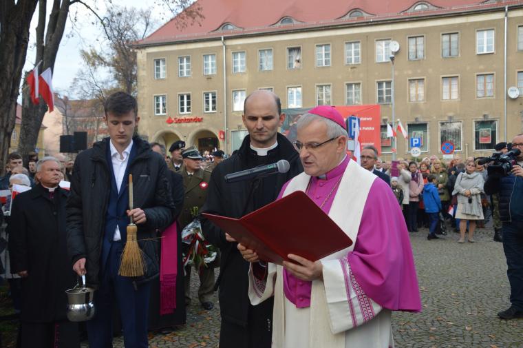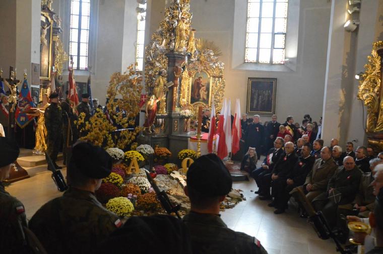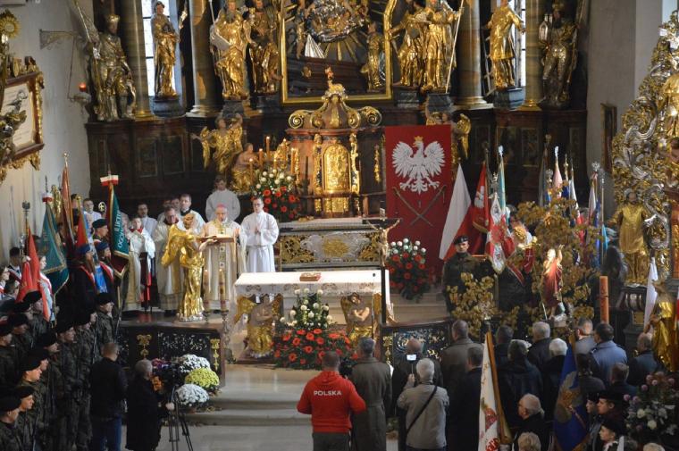 W homilii mszalnej bp Marek mówił min. o miłości do Ojczyzny. - My, Polacy, jesteśmy narodem szczególnie ciężko doświadczanym przez historię. Tyle razy niszczono nasz kraj i zniewalano jego mieszkańców. Walka o wolność i niepodległość Polski trwała z niewielkimi przerwami prawie dwieście lat. Prowadzili ją polscy żołnierze walczący z bronią w ręku, biorący udział w niezliczonych wojnach „za wolność waszą i naszą”. Prowadzili ją również polscy poeci, muzycy, pisarze i uczeni przy pomocy swojej twórczości, która była bronią jeszcze groźniejszą niż karabin czy szabla. Prowadzili ją polscy duchowni, modląc się gorąco do Boga o zmiłowanie nad udręczoną Ojczyzną i podtrzymując nadzieję na wolność w ciemiężonym przez zaborców narodzie. Prowadzili ją polskie rodziny, które wychowywały swoje dzieci w duchu miłości Ojczyzny, do ojczystej kultury i chrześcijańskiej religii. Prowadził ją cały polski lud, który choć był przez wieki zaniedbywany i niejednokrotnie ciemiężony przez sprawujących władzę, nie pozwolił sobie wydrzeć ani ziemi, ani języka, ani wiary, ani miłości do Ojczyzny. A gdy trzeba było stawał w jej obronie do śmiertelnej walki, nie szczędząc krwi – mówił.