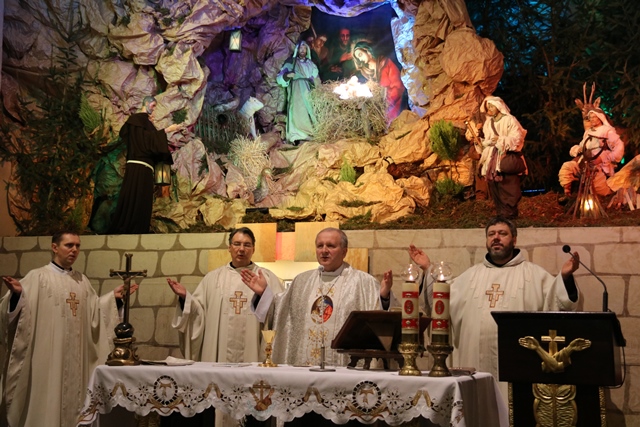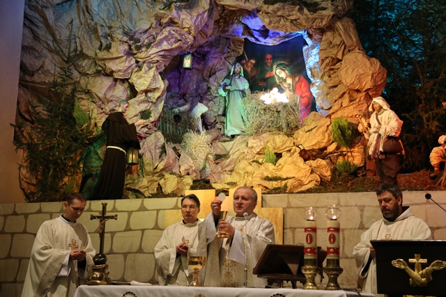 W swoim słowie gwardian i kustosz sanktuarium o. Ksawery Majewski wskazał, że 26 grudnia 2018 r. biskup kaliski Edward Janiak franciszkański kościół ustanowił Sanktuarium Matki Bożej przy Żłóbku. Dodał, że kościół od XVIII w. jest miejscem szczególnego kultu Najświętszej Maryi Panny, która odbiera od wiernych cześć i jest wzywana jako szczególna orędowniczka dla małżonków oczekujących potomstwa i matek noszących w sobie nowe życie. Zachęcał też osoby konsekrowane, aby zawierzały siebie i swoje wspólnoty Matce Najświętszej.