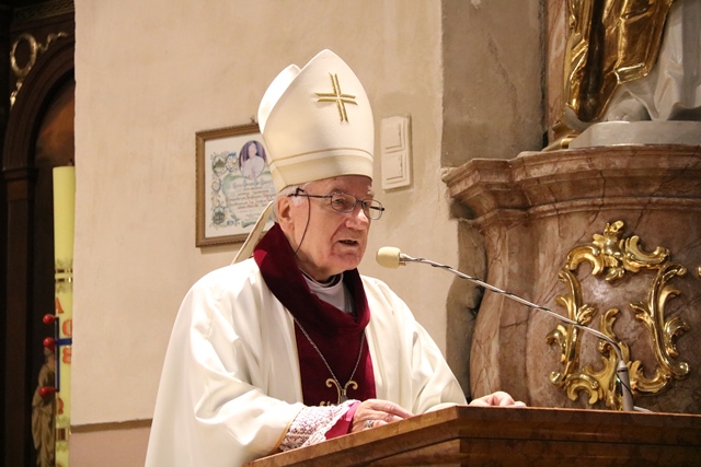 Dodał, że Kościół nie tylko głosi z miłością, ale i ze stanowczością Bożą naukę dotyczącą małżeństwa i rodziny, nie tylko przypomina prawa i obowiązki małżonków i rodziców, ale również obowiązki innych, zwłaszcza społeczeństwa i państwa wobec rodziny. – Kościół stara się też ciągle rozwijać formy duszpasterstwa, by nieść pomoc rodzinie. Do tych działań należy zaliczyć odbywające się od wielu lat modlitewne spotkania w pierwsze czwartki miesiąca w Sanktuarium św. Józefa Kaliskiego. Jakże błogosławiona jest ta inicjatywa obejmująca całą Polskę, a nawet sięgająca poza granice kraju dzięki Radiu Maryja i Telewizji Trwam – mówił bp Fortuniak.