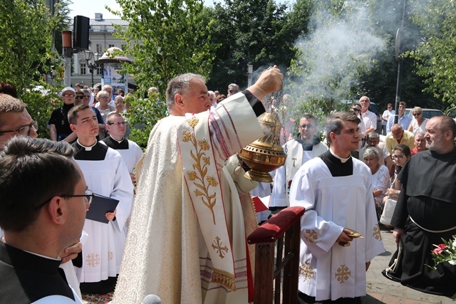 Zachęcał wiernych do adoracji Najświętszego Sakramentu. - Adorujemy święte postacie eucharystyczne. Adorujemy Chrystusa prywatnie i publicznie, w kościołach i kaplicach. Kiedy wczytujemy się w żywoty świętych to widzimy, że każdy ze świętych odznaczał się adoracją Najświętszego Sakramentu, miłością do Boga ukrytego w Najświętszym Sakramencie – wskazywał celebrans.