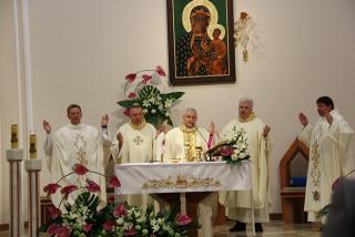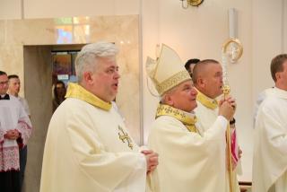 Dziękował parafianom za troskę o świątynię. Słowa wdzięczności wypowiedział do obecnego na uroczystości ks. prał. Marka Otręby, który był budowniczym kościoła. Wskazał, że bardzo wiele dokonał przez ostatnie trzy lata ks. prał. Leszek Szkopek.