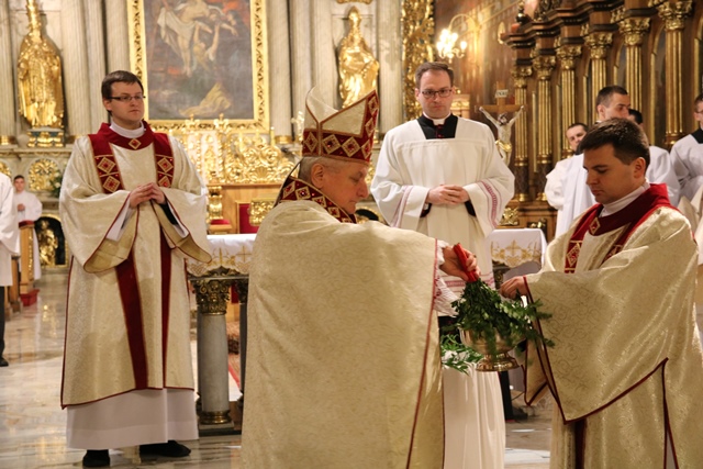 Wraz z biskupem kaliskim Edwardem Janiakiem modlili się: biskup pomocniczy diecezji kaliskiej Łukasz Buzun, proboszcz katedry ks. prał. Adam Modliński, kapłani pracujący w Kurii Diecezjalnej i katedrze.