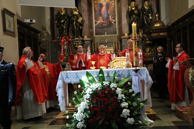 W homilii biskup kaliski wskazywał na św. Floriana, patrona strażaków, którego warto wzywać do pomocy w walce z żywiołami. – Modlimy się do św. Floriana, bo on jest przykładem człowieka charakteru. Nie zaparł się Boga w najtrudniejszych warunkach. Tylko człowiek z charakterem potrafi służyć. Straż pożarna służy człowiekowi. Staje w obronie człowieka i jego mienia. Staje w szeregu służących człowiekowi, który czasem jest zagrożony przez żywioły, kataklizmy, nieszczęścia. Strażacy udzielają pierwszej pomocy sanitarnej. To jest naprawdę bezinteresowna służba – zaznaczył celebrans.