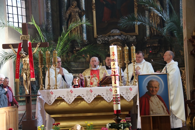 Przypomniał, że święto Miłosierdzia Bożego ustanowił osiemnaście lat temu św. Jan Paweł II. – Święto Miłosierdzia było wielkim pragnieniem Jezusa, który przez s. Faustynę polecił, aby w pierwszą niedzielę po Wielkanocy było takie święto. Z tym świętem Jezus złączył niezwykłą obietnicę, która sprawia, że to święto działa jakby sakrament chrztu świętego – stwierdził celebrans