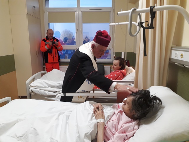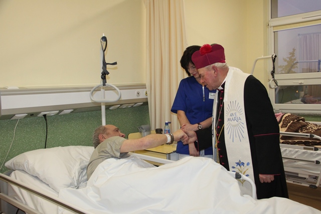 Po Mszy św. biskup odwiedził pacjentów oddziału paliatywnego.