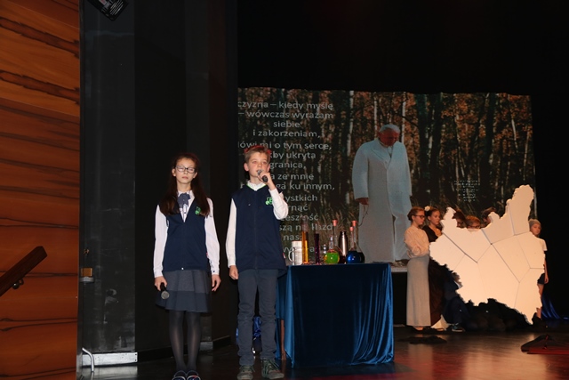 Zgromadzeni w Ostrowskim Centrum Kultury mieli okazję obejrzeć przedstawienie pt. „O wolności słowa Jana Pawła II” w wykonaniu uczniów Szkoły Podstawowej nr 6 w Ostrowie Wielkopolskim.