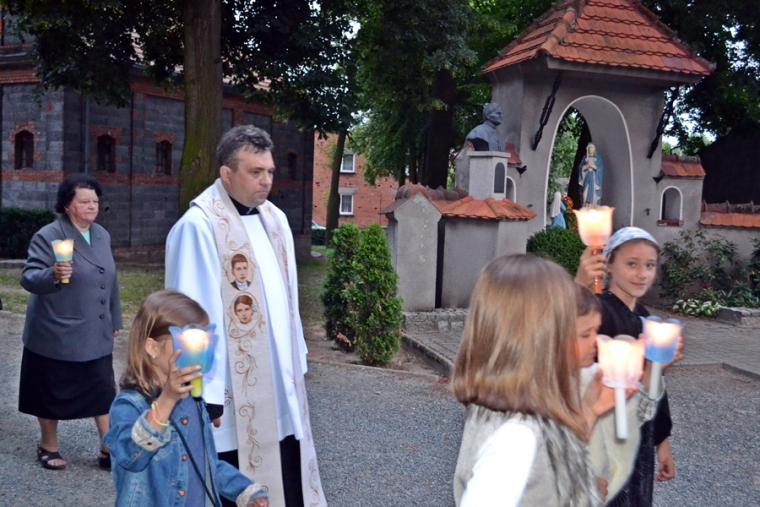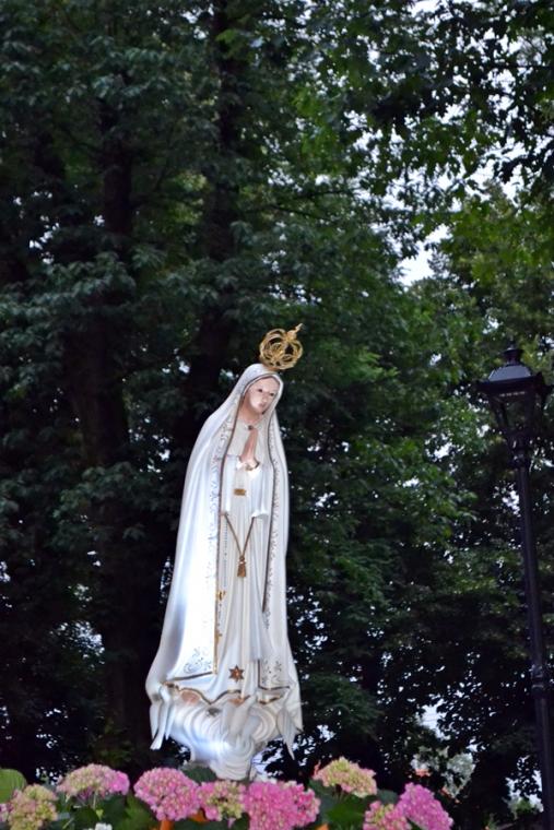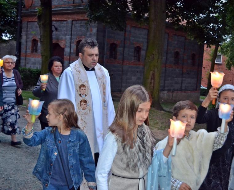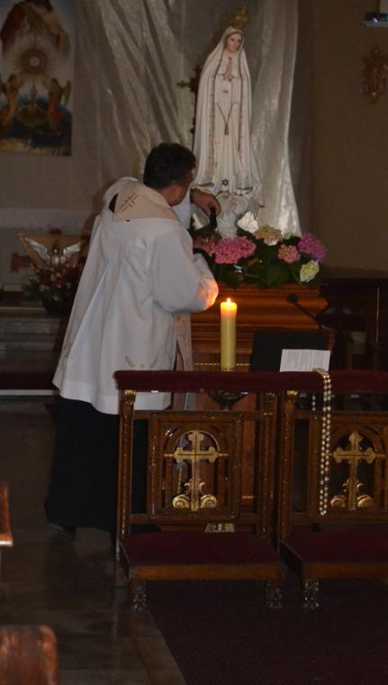 W słowie wprowadzającym do czerwcowego nabożeństwa fatimskiego ksiądz proboszcz Krzysztof  przypomniał nam okoliczności oraz treść drugiego objawienia. Podkreślił, że nie miało ono charakteru tak kameralnego jak pierwsze, gdyż wraz z dziećmi na miejscu objawienia było około 50-ciu obserwatorów, którzy potwierdzali nadzwyczajność znaków.  Przewodniczący modlitwie podkreślił, że Maryja poprosiła dzieci, by codziennie odmawiały różaniec, a także nauczyły się czytać. Zaakcentował, że prośby te pokazują istotne cechy życia chrześcijańskiego. Kontynuując powiedział: „Połączenie tych dwóch próśb rodzi program- systematycznie się rozwijaj. Trzeba to robić zarówno w sensie duchowym jak i intelektualnym. Aby Bóg  uczynił z nas dobre narzędzia trzeba być człowiekiem  rozmodlonym i ciągle pragnącym rozwoju”. Ponadto ksiądz kanonik podkreślił wielość powołań w Kościele. Zachęcał zebranych do refleksji nad swoim życiem i postawienia sobie pytania: czy nie pozbawiamy się rozwoju w jakimś jego wymiarze? Czy nie wykonujemy pracy w sposób niedbały? czy nie rezygnujemy  z oddawania chwały Bogu zaniedbując modlitwę?  Nawiązując do słów  Fatimskiej Pani, które skierowane zostały do pastuszków podczas drugiego objawienia ksiądz proboszcz przypomniał obietnice jakie związane są z odprawieniem nabożeństwa pięciu pierwszych sobót miesiąca.Przed rozpoczęciem modlitwy różańcowej ks. kan. Krzysztof zachęcał wiernych, by  w ciszy wypowiedzieli intencje, z którymi  przybyli na modlitewne spotkanie. Rozważaliśmy tajemnice chwalebne różańca. Kontemplacja  każdej tajemnicy zakończona  była postanowieniem. W pierwszej tajemnicy rozważaliśmy Zmartwychwstanie  Pana Jezusa. Wybrzmiała w niej prośba, byśmy tak jak Maria, usłyszeli wezwanie po imieniu i na nie odpowiedzieli. Usłyszeliśmy słowa zachęty do ożywiania w sobie życia nadprzyrodzonego przez częste korzystanie z sakramentów świętych. W drugiej tajemnicy rozważaliśmy Wniebowstąpienie Jezusa. Ważne dla naszego duchowego rozwoju postanowienie wybrzmiało po rozważaniu drugiej tajemnicy chwalebnej. Zachęcało ono do unikania najmniejszego grzechu i zgadzania się zawsze  z wolą Bożą. W kolejnej tajemnicy rozważaliśmy Zesłanie Ducha Świętego tej tajemnicy polecaliśmy osoby chore i cierpiące w naszej parafii, prosząc o wiarę dla nich, a także za lekarzy, aby towarzyszyło podejmowanym przez nich decyzjom światło Ducha Świętego. W sposób szczególny polecaliśmy kapelanów szpitali, aby Duch Święty wspierał ich odpowiedzialną i trudną  posługę. Po czwartej tajemnicy wybrzmiały następujące słowa postanowienia: „ Dozwól Panno Święta, bym Cię godnie chwalił. Udziel mi mocy przeciw  Twoim wrogom".   Rozważając tę tajemnice ksiądz proboszcz zaakcentował, że Maryja chroni nas od szkód materialnych, które mają  wpływ na naszą  wieczność. Maryja, jak podkreślił, jest znakiem naszej wieczności. Rozważając piątą tajemnicę uczestniczący w nabożeństwie usłyszeli słowa zachęty do tego, by uczynili Maryję  Królową  swoich serc. Ponadto ksiądz kanonik podkreślił, że niebawem na Jasną Górę wyruszą pielgrzymki. W tej dziesiątce prosiliśmy o otwartość naszych serc i domostw  na pielgrzymów. Pobyt pielgrzymów  w naszej miejscowości jest okazją do tego, by dać świadectwo o swojej wierze. Po różańcu za krzyżem i figurą Matki Bożej ze śpiewem  „ Z dalekiej Fatimy…”, z płonącymi lampionami wyruszyliśmy w procesji  wokół kościoła. Podczas procesji rozległo się bicie dzwonów. To znak, że właśnie wybiła godzina 21:00 i czas na Apel Jasnogórski, który po powrocie  procesji do kościoła  zaśpiewaliśmy w łączności z Jasną Górą- duchową stolicą Polski. Ksiądz kan. Krzysztof Ordziniak  udzielił wszystkim błogosławieństwa. Czas szybko płynie… Za miesiąc, 13. lipca , spotkamy się znowu w mikstackiej świątyni na kolejnym nabożeństwie fatimskim.