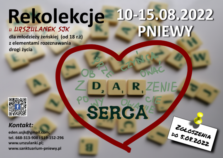 Zapraszamy Cię na rekolekcje połączone z elementami rozeznawania drogi życia. A wszystko to w bliskości relikwii św. Urszuli Ledóchowskiej – kobiety obdarowanej i współpracującej z Bogiem w przemienianiu świata na bardziej ludzki, a przez to Boży .