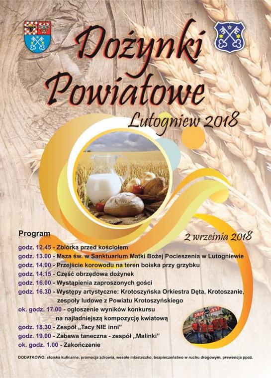 odbędą się Dożynki Powiatu Krotoszyńskiego. Zapraszamy wszystkich, do wspólnego dziękczynienia za ukończone żniwa i prace polowe.