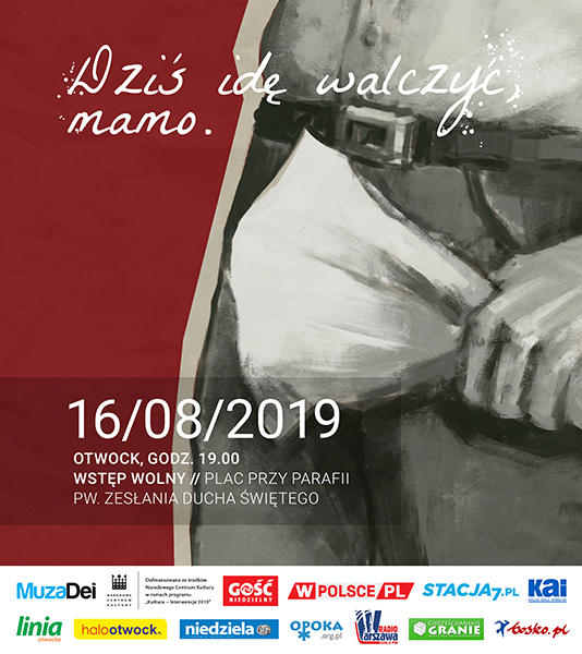 Stowarzyszenie MuzaDei zaprasza na plenerowy koncert piosenek i utworów literackich z  okresu okupacji i Powstania Warszawskiego „Dziś idę walczyć mamo”, który odbędzie się 16 sierpnia o godz. 19.00 na terenie parafii Zesłania Ducha Świętego w Otwocku.