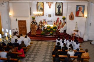 Po części pisemnej, uczestnicy udali się na teren klasztoru Ojców Franciszkanów w Siedlcach. Najpierw uczestniczono we Mszy Świętej, a następnie (jak na 18. edycję przystało) skosztowano jubileuszowego „osiemnastkowego” tortu, który symbolicznie pokroiły osoby związane z olimpiadą od początku. Następnie zostało zaprezentowane nowe logo Olimpiady.