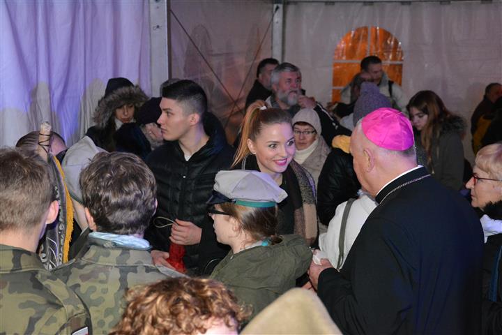 Każdy uczestnik mógł posmakować barszczu, pieczonej ryby czy zupy grzybowej. Zanim jednak mieszkańcy podzielili się opłatkiem, harcerze na ręce Biskupa Legnickiego przekazali betlejemskie światełko symbolizujące pokój, braterstwo, nadzieję i miłość. Odczytany został fragment Ewangelii, następnie bp Kiernikowski pobłogosławił opłatki.