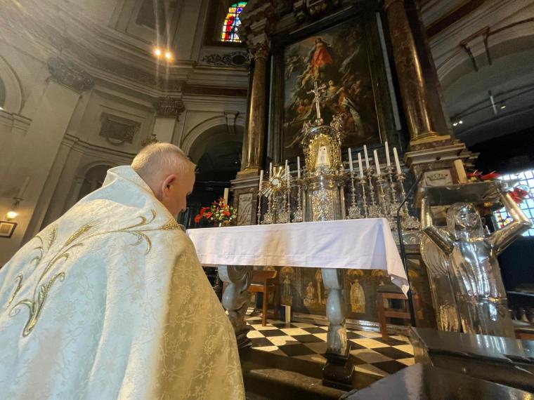 Z okazji jubileuszowej pielgrzymki Ks. Biskup Grzegorz w bazylice przed figurą Matki Bożej w historyczny sposób zawierzył Polonię belgijską opiece Maryi: