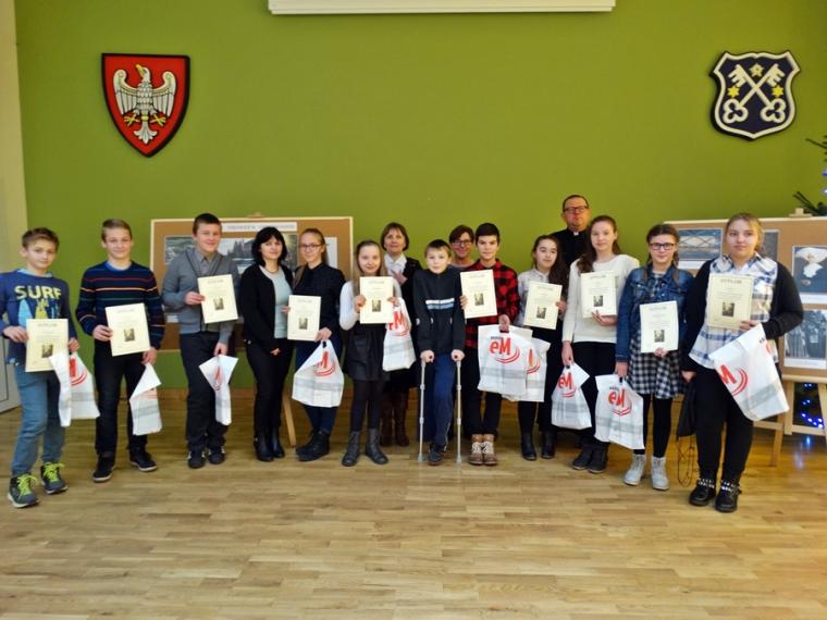 W konkursie wzięło udział 11 uczniów z kl. V, VI i VII z sześciu szkół z terenu gminy Krotoszyn: ZSP Benice, SP Biadki, SP Gorzupia, SP Kobierno, SP Lutogniew i SP Świnków. Uczestnicy wykazali się wysokim poziomem wiedzy. Po słodkim poczęstunku, zostały wręczone dyplomy i nagrody. I miejsce zajęły: Aleksandra Frala ze SP Kobierno i Maria Koper ze SP Świnków, III miejsce Klaudia Woźniak również ze SP Świnków. Wszyscy uczestnicy konkursu i ich opiekunowie otrzymali relikwie św. Jana Pawła II i Sługi Bożego Kardynała Stefana Wyszyńskiego.