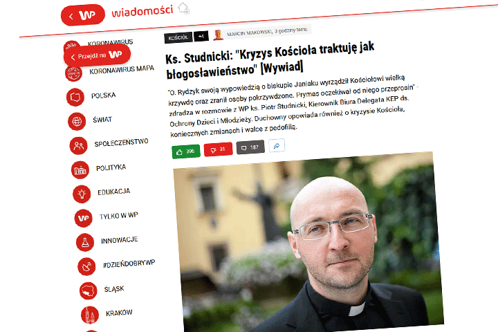 Pytany o przyszłość Kościoła, ks. Studnicki patrzy jednak z nadzieją. „Każde ujawnienie prawdy, choć wywołuje szok, jest jak przecięcie bolesnego wrzodu. Każda historia, którą wyjaśniamy z uczciwością, służy zdrowieniu tak osoby pokrzywdzonej jak i wspólnoty Kościoła. Jako Kościół przeżywamy trudny czas leczenia, któremu towarzyszy ogromne poczucie wstydu i bólu. Prawda i autentyczność w przeżywaniu tego jest jedyną drogą” – mówi.