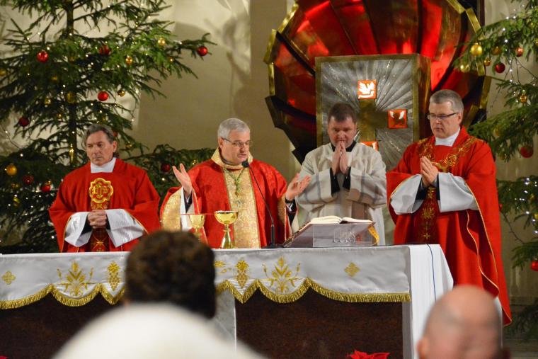 Po Eucharystii w centrum spotkań odbyło się składanie życzeń i łamanie się opłatkiem. Na scenie z koncertem kolęd wystąpił zespół Pastuszki Team z Gogołowic. Tradycyjne kolędy na góralską nutę w nowoczesnych aranżacjach zachęcały uczestników do wspólnego śpiewu. Po posiłku przygotowanym przez organizatorów rozpoczęła się zabawa taneczna, która zakończyła się pokazem sztucznych ogni.