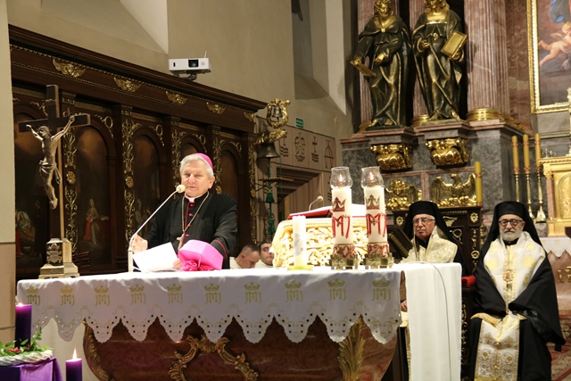 Witając zwierzchnika Katolickiego Kościoła Melchickiego bpa Josepha Absi, wikariusza generalnego bpa Mikołaja, delegację patriarchatu, kapłanów i wiernych biskup kaliski Edward Janiak prosił o modlitwę do św. Józefa w intencji jedności Kościoła. - Pan Jezus jak odchodził przewidział, że będą się dzielić i jako ostatnią wolę prosił apostołów, aby byli jedno. Dzisiaj bardzo łatwo jest ludzi poróżnić między sobą, a trudno jest jednoczyć. Módlmy się o jedność w rodzinie, sąsiedztwie, parafii i ojczyźnie – powiedział hierarcha.