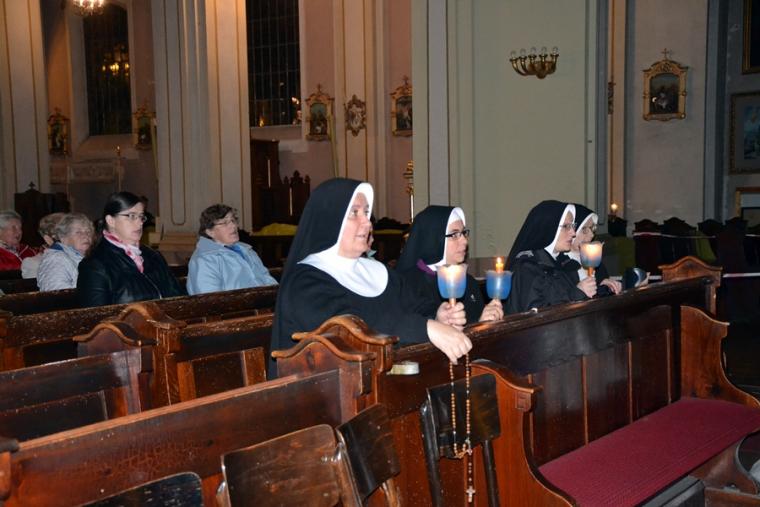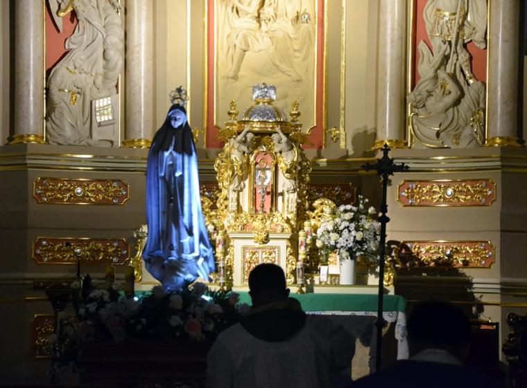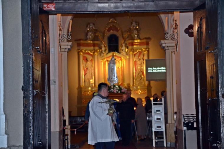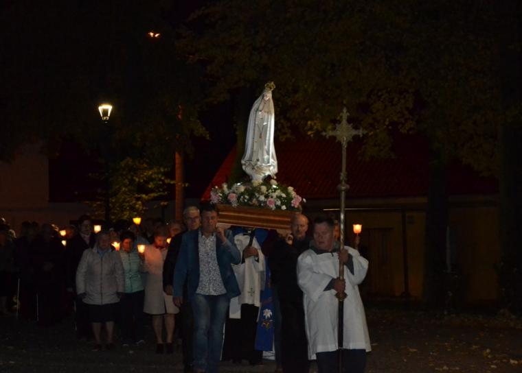 Piękny duchowo był dzień 13 października A.D. 2019 roku. Zbiegło się w nim tyle ważnych wydarzeń. Przypadł tym razem w niedzielę, dzień Pański. W tym dniu przeżywaliśmy także XIX Dzień Papieski, który tym razem przebiegał pod hasłem: „Wstańcie, chodźmy”. Wreszcie był to dzień fatimski. W niedzielny wieczór mikstacka świątynia wypełniła się wiernymi, którzy w tym szczególnym dniu przyszli na ostanie w tym roku nabożeństwo fatimskie. Nabożeństwu przewodniczył ks. kan. Krzysztof Ordziniak. Przed 102 laty miało miejsce szóste objawienie fatimskie. Przy pięknie ozdobionej kwiatami figurze Matki Bożej Fatimskiej ustawionej w środkowej nawie płonęła świeca. To od niej, po zakończeniu trzeciej tajemnicy, ministrant odpalił świeczkę i zaniósł płomień jej wiernym zebranym w kościele. Na początku ks. proboszcz przybliżył zebranym okoliczności szóstego objawienia się Fatimskiej Pani. W czasie tego objawienie Maryja powiedziała do Łucji: „chcę ci powiedzieć, żeby zbudowano tu na moją cześć kaplicę. Jestem Matką Boską Różańcową. Trzeba w dalszym ciągu codziennie odmawiać różaniec”. Zapowiedziała także zakończenie wojny. We wrześniu Maryja zapowiadała „ w październiku przybędzie również Nasz Pan, Matka Boża Bolesna i z Góry Karmelu, św. Józef z Dzieciątkiem Jezus, żeby pobłogosławić świat”. Z relacji zgromadzonych wynikało, że zobaczyli św. Józefa z Dzieciątkiem Jezus i Maryją. Święty Józef z Dzieciątkiem błogosławili świat wykonując ręką znak w kształcie krzyża. Podczas tego objawienia miał miejsce cud słońca. W jego atmosferę wprowadziły nas przytoczone przez ks. kanonika opisy prasowe z tamtego okresu. Nawiązując do słów Ewangelii, które Kościół przeznaczył na XXVIII niedzielę ks. kan. Krzysztof zachęcał zebranych, by ta modlitwa różańcowa była naszym dziękczynieniem za pontyfikat św. Jana Pawła II, za Jego przykład umiłowania Maryi, ale także za ocalenie Go podczas zamachu. W modlitwie polecaliśmy także naszą ojczyznę. Był też czas, by w cichości serca przedstawić Pani z Fatimy nasze osobiste intencje, zarówno podziękowania jak i prośby, z którymi przyszliśmy na modlitewne spotkanie.Rozważaliśmy tajemnice chwalebne różańca. Kontemplacja każdej tajemnicy zakończone było postanowieniem. W pierwszej tajemnicy rozważaliśmy Zmartwychwstanie Pana Jezusa. Postanowienie, które wybrzmiało po rozważeniu tej tajemnicy zachęcało nas do ożywienia w sobie życia nadprzyrodzonego poprzez częste korzystanie z sakramentów świętych. W drugiej tajemnicy rozważaliśmy Wniebowstąpienie Jezusa. Ważne dla naszego duchowego rozwoju postanowienie wybrzmiało po rozważaniu drugiej tajemnicy chwalebnej. Zachęcało ono do unikania najmniejszego grzechu i zgadzania się zawsze z wolą Bożą. W kolejnej tajemnicy rozważaliśmy Zesłanie Ducha Świętego. Po tej tajemnicy popłynęły do zebranych słowa zachęty do codziennej modlitwy do Ducha Świętego. Po czwartej tajemnicy wybrzmiały następujące słowa postanowienia: „ Dozwól Panno Święta, bym Cię godnie chwalił. Udziel mi mocy przeciw Twoim wrogom". Rozważając piątą tajemnicę uczestniczący w nabożeństwie usłyszeli słowa zachęty do tego, by uczynili Maryję Królową swoich serc. Następnie odmówiliśmy modlitwę Anioła z Fatimy do Trójcy Przenajświętszej, by po jej zakończeniu za krzyżem i figurą Matki Bożej ze śpiewem „ Z dalekiej Fatimy…”, z płonącymi lampionami wyruszyć w procesji wokół kościoła. Z wieży rozległo się bicie dzwonów. Był to znak, że właśnie wybiła godzina 21:00 i czas na Apel Jasnogórski, który zaśpiewaliśmy w łączności z Jasną Górą- duchową stolicą Polski. Ksiądz kanonik udzielił wszystkim błogosławieństwa. Potem otoczyliśmy figurę Fatimskiej Pani i zaśpiewaliśmy kołysankę „Zapada zmrok…”. Piękny duchowo dzień 13 października za nami…