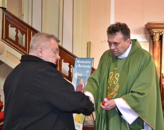 Wielką wdzięcznością, ale i smutkiem  napełnione były serca wiernych uczestniczących w niedzielę we mszy świętej sprawowanej przez ks. kan. Krzysztofa Ordziniaka i ks. kan. Grzegorza Klapę. Ksiądz proboszcz Krzysztof dziękował w tej Eucharystii za 39 lat posługi w parafii Pana Marka Medyńskiego organisty, kapelmistrza, a przez wiele lat dyrygenta chóru parafialnego. Trudno słowami wyrazić wdzięczność za tak oddaną posługę, więc otoczyliśmy Pana Marka swoją modlitwą. W dniu 1 marca Pan Marek kończy posługę w naszej wspólnocie.