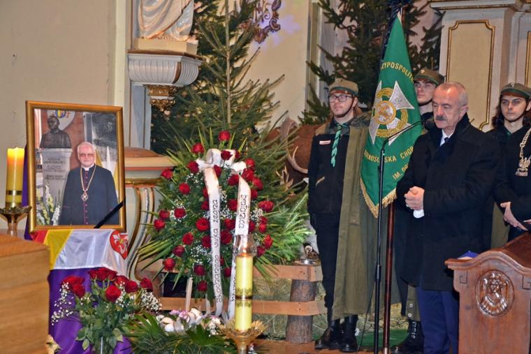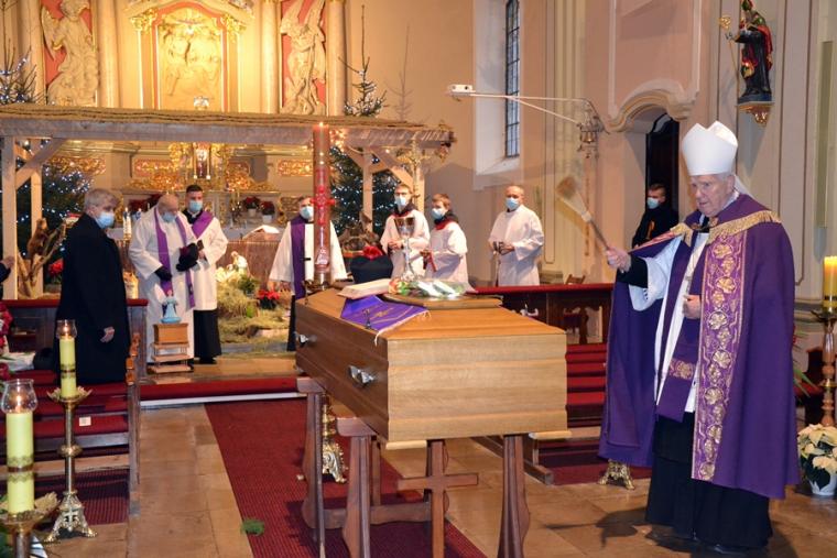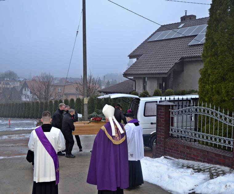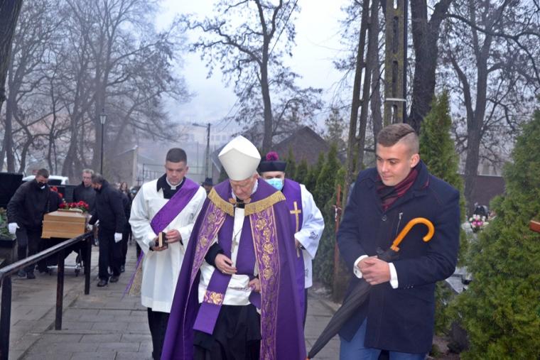 Kończąc homilię ks. biskup Ignacy powiedział: „Spoczywaj w pokoju dobry kapłanie, przyjacielu, Boga, człowieka, stron rodzinnych, prawdy, dobra i piękna. Przyjacielu mądrości i radości. Dołącz do grona świętych mężów w niebie. Niech Maryja, którą miłowałeś na ziemskich drogach Twojego życia niech Cię teraz przytuli do swojego matczynego serca i zaprowadzi do Jezusa. Wierzymy, że swoją chorobą, cichym cierpieniem spłaciłeś już dług swoich słabości i znajdziesz Boże miłosierdzie, któremu zawsze ufałeś. My się dziś za Tobą wstawiamy w tej świątyni przed Panem i mówimy spoczywaj w pokoju. Do zobaczenia w wieczności. Amen”.