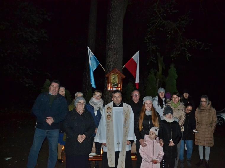 Ksiądz kan. podkreślił, że nie byłoby nas tutaj gdyby nie wiara naszych przodków, którzy ustawili tę kapliczkę i przekazali nam wiary. Jesteśmy im winni wdzięczność i modlitewną pamięć. Po specjalnej modlitwie ks. proboszcz dokonał poświęcenia odnowionej kapliczki.