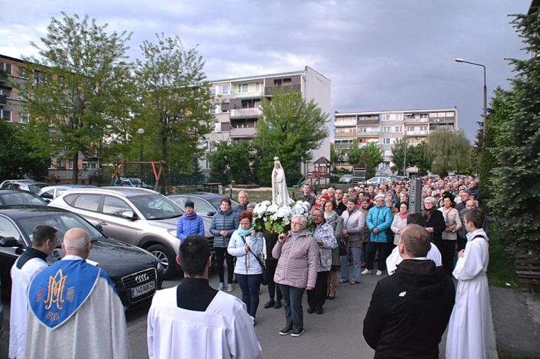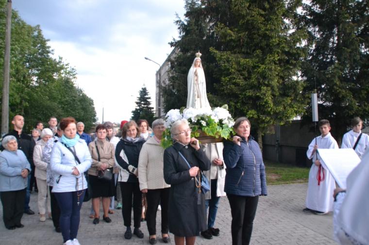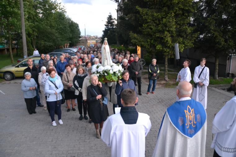 Licznie zgromadzeni wierni wyruszyli z figurą Pani Fatimskiej. Nabożeństwu z procesją różańcową przewodniczył ks. prał Henryk Orszulak, proboszcz parafii. Na zakończenie nabożeństwa wszyscy mogli uczcić relikwie pastuszków fatimskich. „Są na ziemi tej takie miejsca, do których chętnie się wraca, gdzie Matka czeka nas najlepsza i pokój duszy przywraca. To właśnie tam w Fatimie, u Maryi, to właśnie tam tak wiele dzieje się. Ileż tam łaski i miłości matczynej, to właśnie tam powracać ciągle chcę”.