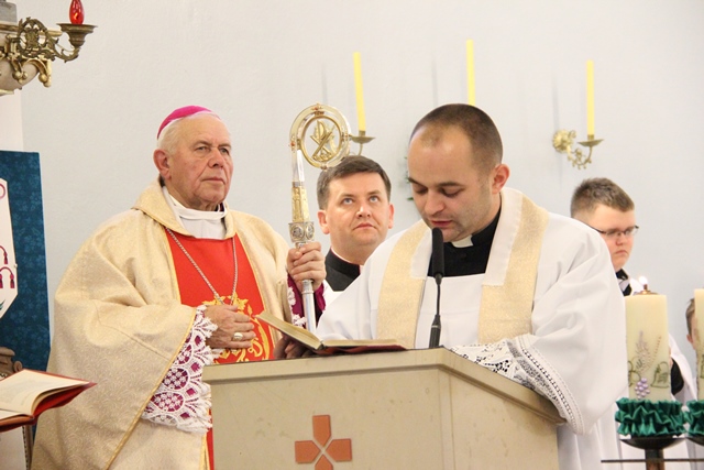 W homilii pierwszy biskup kaliski podkreślał, że w życiu ziemskim Duch Święty prowadzi człowieka przez wiarę do Boga. Wskazał, że św. Jadwiga Śląska, patronka parafii i bł. ks. Jerzy Popiełuszko są wzorowymi przykładami prowadzenia przez Ducha Świętego.
