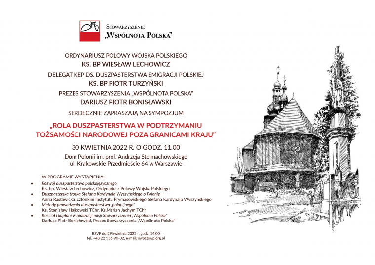Zachęcamy do zapoznania się z materiałami wprowadzającymi do sympozjum opracowanymi przez Stowarzyszenie "Wspólnota Polska" i Polonijną Agencję Informacyjną. Liczymy, że stanowić będą omówienie dotychczasowej perspektywy roli duszpasterstwa polonijnego, spojrzenia na Polonię i Polaków za granicą w aspekcie ich duchowości i roli jaką wiara chrześcijańska odgrywała i nadal odrywa w życiu indywidualnym i zbiorowym diaspory.