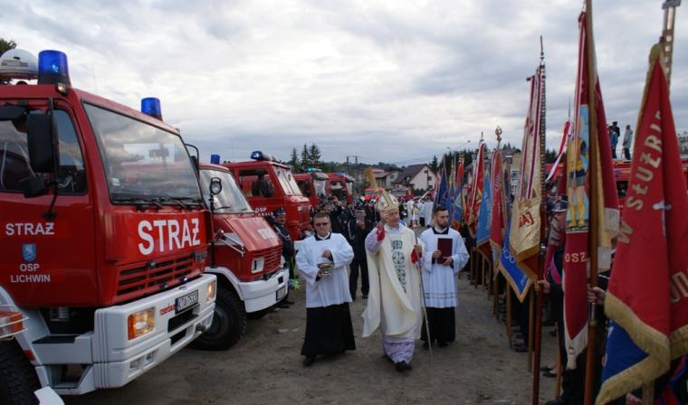 Po Eucharystii celebransi wraz z asystą liturgiczną udali się na parking sanktuaryjny, aby pobłogosławić pojazdy straży pożarnej.