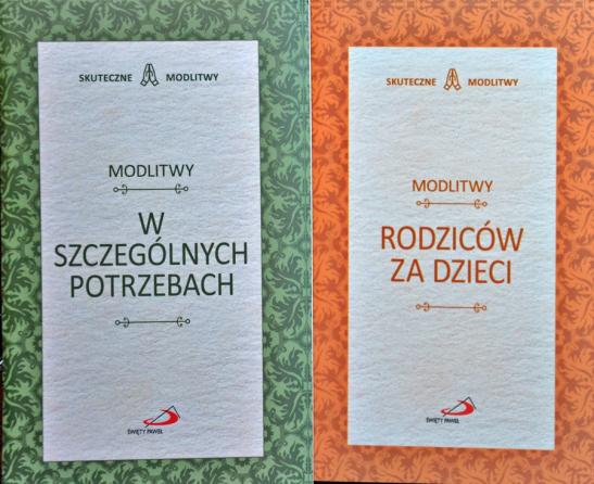 W różnych sytuacjach życiowych szukamy wstawiennictwa Świętych, szukamy modlitw, które pomogą nam wyrazić nasze radości, troski, lęki, niepokoje. Czasami trudno nam znaleźć odpowiednie słowa, by wyrazić to co czują nasze serca. Z pomocą przyjść nam mogą wtedy książeczki wydawane przez Edycję Świętego Pawła, znana zapewne wielu i mająca grono wiernych odbiorców seria Skuteczni Święci oraz ukazując się od niedawna seria Skuteczne Modlitwy. Chcemy podzielić się informacją o dwóch z serii Skuteczne modlitwy, które niedawno trafiły na półki księgarń.