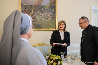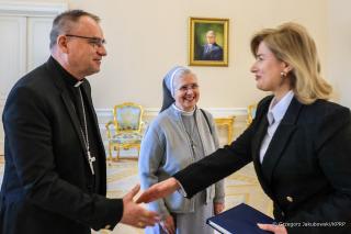 Podsekretarz Stanu w KPRP Agnieszka Jędrzak, która odpowiada za Biuro do Spraw Polonii oraz Biuro Odznaczeń i Nominacji, nakreśliła główne kierunki działań Prezydenta RP na rzecz Polaków za granicą oraz zapewniła o gotowości współpracy Kancelarii Prezydenta RP z Konferencją Episkopatu Polski i wsparcia projektów realizowanych na rzecz rodaków mieszkających poza Ojczyzną. W trakcie rozmowy poruszono również kwestie dbałości o pamięć historyczną oraz istotne znaczenie polityki odznaczeniowej Prezydenta RP, jako wyrazu wdzięczności i uznania dla zasług Polonii.