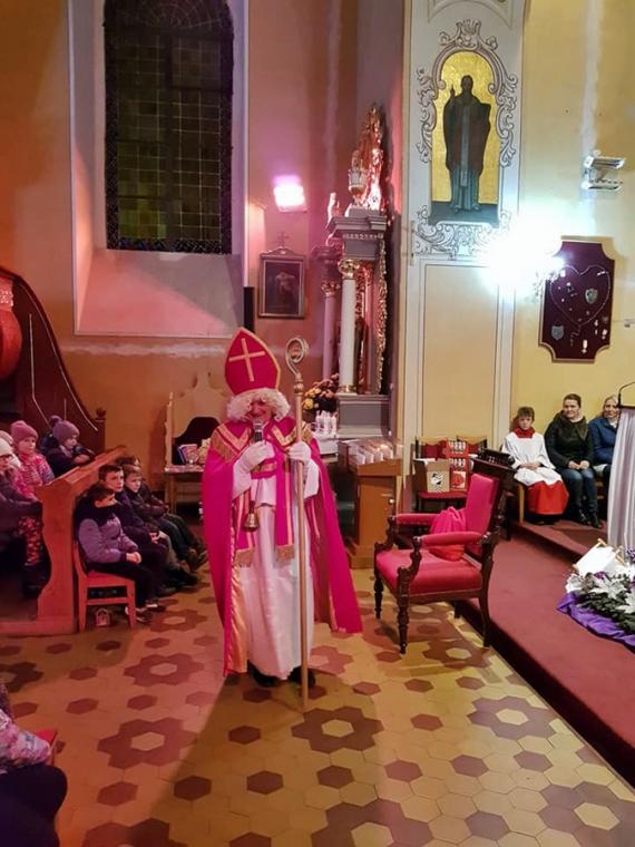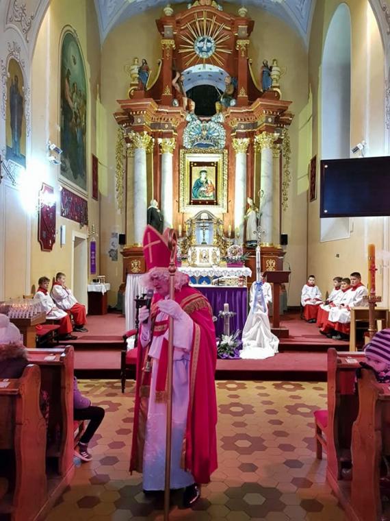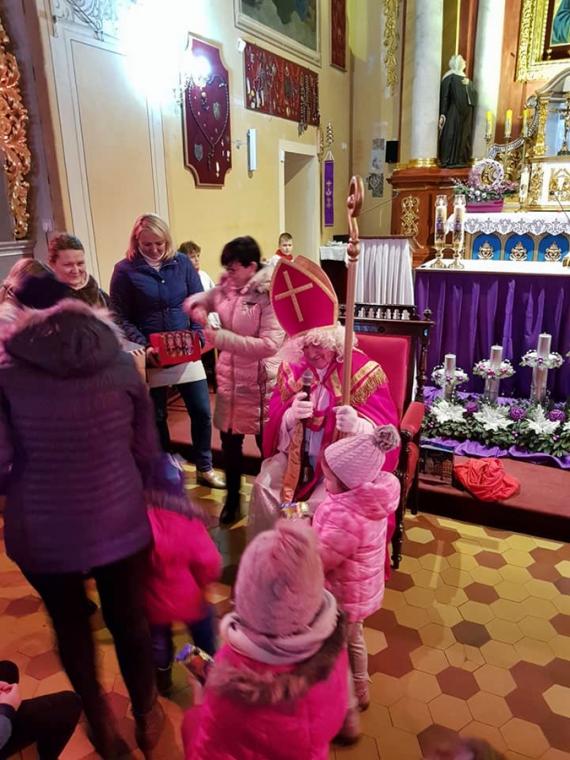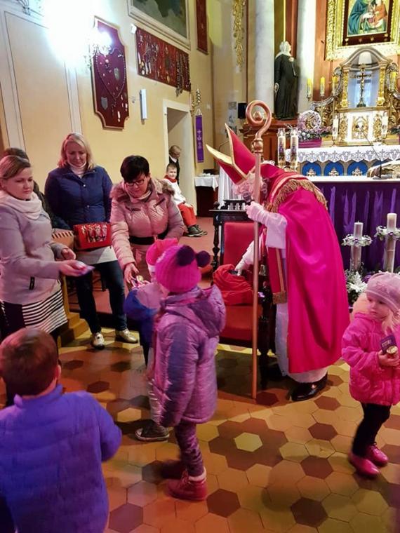 W ten adwentowy czas wpisuje się także wspomnienie św. Mikołaja Biskupa. Kochają tego Świętego i modlą się chętnie do niego nie tylko dzieci, ale dorośli. Zasłynął bowiem z wielkiej szczodrobliwości wobec potrzebujących. Pamiętał także o dzieciach z Lutogniewskiej parafii. Warto tu dodać, że  sanktuarium pojawił się nie jakiś krasnal przebrany w czerwony strój, rozdający upominki, ale właśnie św. Mikołaj Biskup w mitrze i z pastorałem w ręku. Porozmawiał z dziećmi, dowiedział się czy są grzeczne. Potwierdziła to także ks.proboszcz Łukasz Żurawski. Jak się można niejednokrotnie przekonać dzieci z Lutogniewskiej parafii chętnie uczęszczają do kościoła  uczestnicząc w  Mszach Świętych i różnych nabożeństwach otrzymały od Świętego Mikołaja słodkie upominki. Spotkanie ze św. Biskupem Myry upłynęło w miłej i radosnej atmosferze. A potem św. Mikołaj wyruszył w dalszą drogę, bo wiele dzieci w tym dniu czeka na niego.