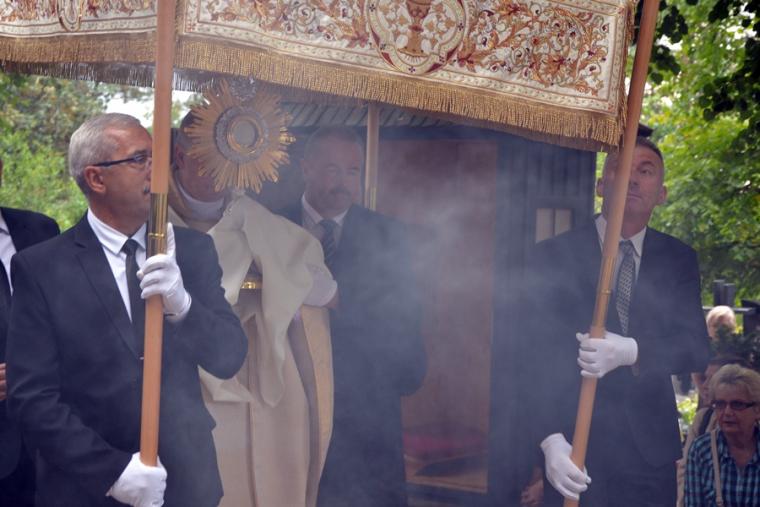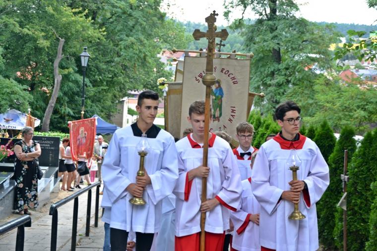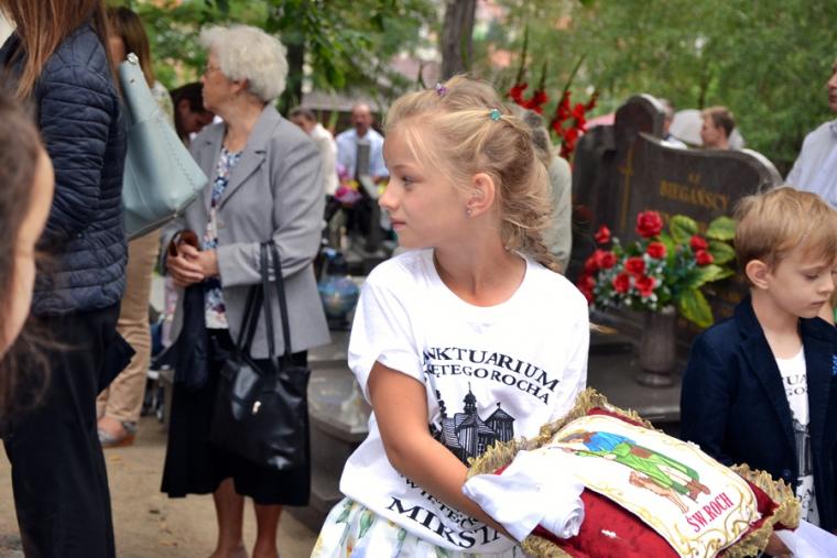 Po mszy świętej  Ksiądz  Biskup odczytał litanię do św. Rocha. Następnie procesja z Najświętszym Sakramentem przeszła cmentarnymi alejami. Błogosławieństwo Najświętszym Sakramentem zakończyło uroczystą sumę odpustową. Zgodnie z tradycją po Mszy św. wierni zabierali do domów małe chlebki, by podzielić się nimi z bliskimi. Przy rozdawaniu chlebków pomagali uczestnicy spotkań  w Szkole św. Rocha oraz dziewczęta z Eucharystycznego Ruchu Młodych.