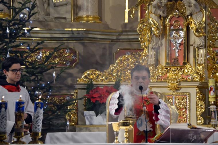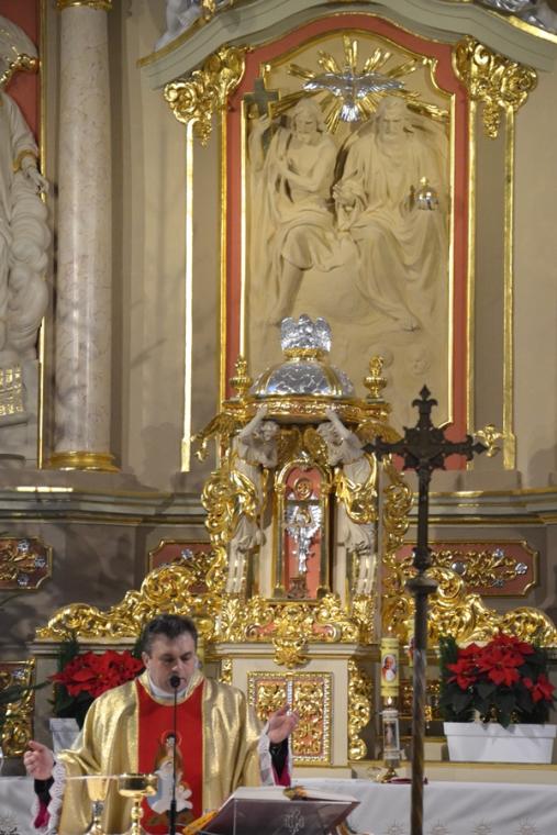 Na początku Eucharystii ks. kanonik Krzysztof podziękował małżonkom za pozytywną odpowiedź na jego zaproszenie. Podczas dzisiejszej mszy świętej zamiast homilii został odczytany List pasterski Biskupa Kaliskiego Edwarda Janiaka na święto Świętej Rodziny w związku z zakończeniem Nadzwyczajnego Roku Świętego Józefa Kaliskiego. Nasza diecezja przeżywała czas szczególnej łaski Nadzwyczajny Rok Świętego Józefa Kaliskiego. Chociaż, jak podkreśla w Liście bp ordynariusz, miał on wymiar ogólnopolski, a nawet międzynarodowy. W tym czasie do Narodowego Sanktuarium św. Józefa w Kaliszu pielgrzymowali wierni z najodleglejszych zakątków nie tylko naszego kraju, ale i świata. W Liście znalazły się słowa zachęty skierowane do małżonków, by wpatrując się w Maryję i Józefa pielęgnowali miłość, którą przyrzekali sobie w dniu ślubu. Ponadto hierarcha zachęcał małżeństwa przeżywające kryzys do poszukiwania sposobów umacniania i odnawiania miłości małżeńskiej. Ksiądz biskup wyraził także pasterską troskę osoby, które żyją w związkach niesakramentalnych. Część Listu poświęcona została kwestii wychowania w rodzinie. Ksiądz Biskup Edward Janiak napisał m.in. „W życiu rodzinnym nie powinno nigdy zabraknąć czasu dla siebie. Jest on niezbędny, aby rodzina mogła przeżywać siebie jak wspólnotę osób. Rozmowa, rodzinna modlitwa i uczestnictwo we Mszy św., wspólne świętowanie, rodzinny posiłek i rekreacja są nieodzowne, aby między rodzicami, dziećmi, dziadkami i innymi członkami rodziny nawiązać i utrzymać serdeczne relacje. Bliskość w rodzinie to sprawa tworzenia autentycznych relacji”. W ostatniej części Listu biskup ordynariusz zwrócił uwagę na owoce Nadzwyczajnego Roku Jubileuszu Świętego Józefa Kaliskiego.